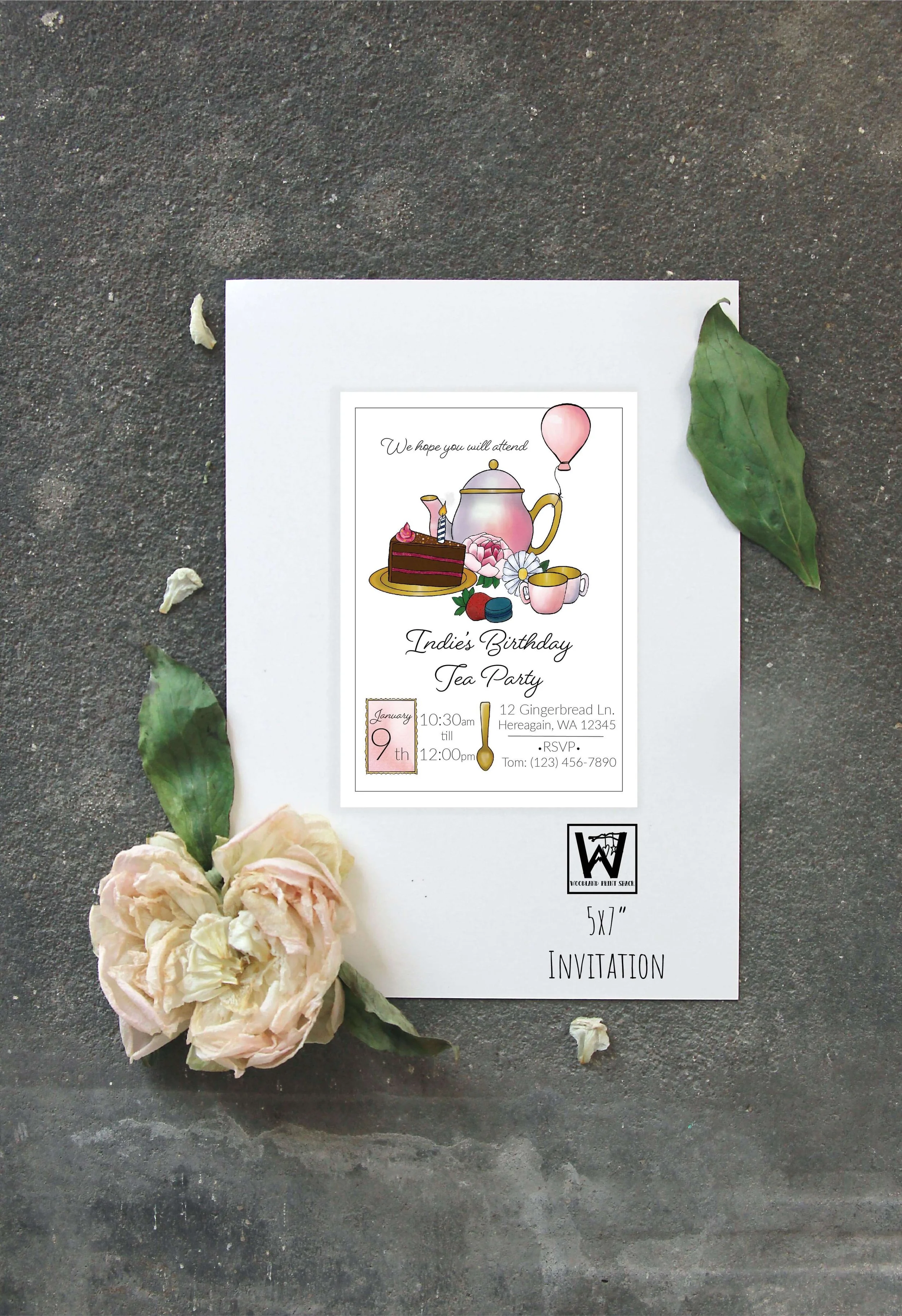 It was such a joy to step a bit outside of my style to create this sweet, girly tea party invitation. The trick was presenting the information an elegant way while working around this large illustration I created.