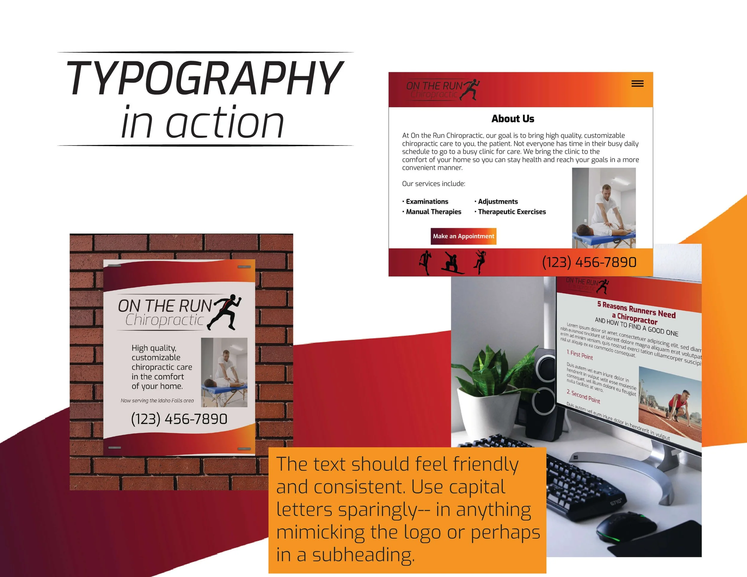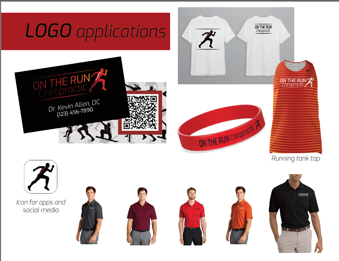 First I developed the logo system. The reason why my client chose the name “On the Run Chiropractic” was because it was going to be a mobile clinic, but also because he is a devoted marathon runner and coach as well.