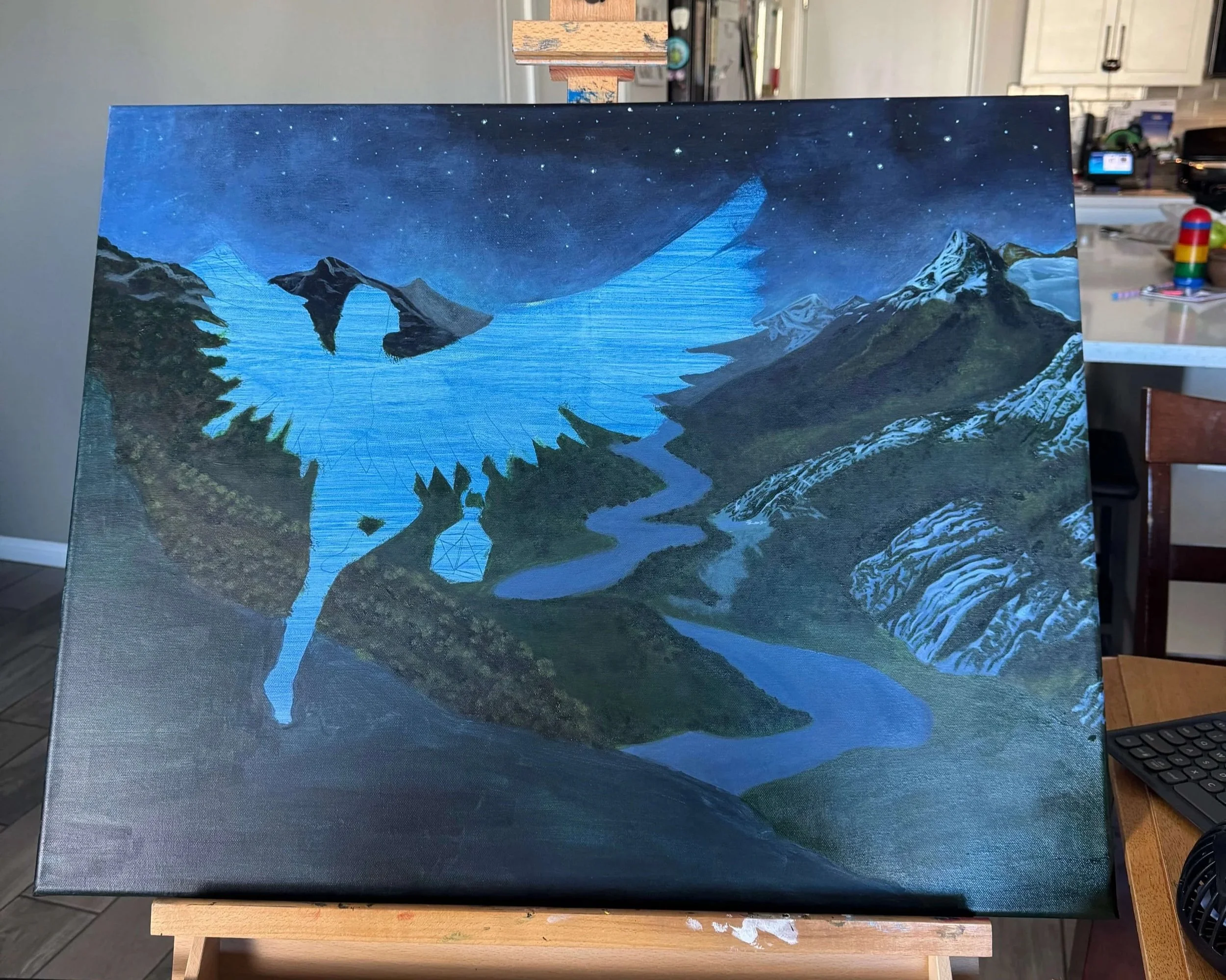 So I finished her up real quick and entered her. She was shown in a digital exhibit with the Las Vegas Artists’ Guild. It did not win any awards, but it was a huge step for me because it was my very first ever gallery showing. Just like the painting depicts, it felt like an official leap out into the unknown.