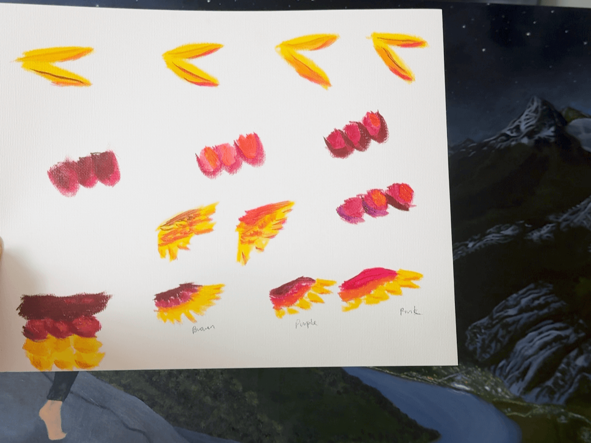 I love birds, but I have never painted bird wings in detail. I spent time researching the structure of different bird wings… the way the feathers were positioned, the various sizes of feathers, etc. And then I adapted what I found to my fantasy version on a human. Finally, I spent some time playing with the colors to develop a plan for the wings that I was happy with.